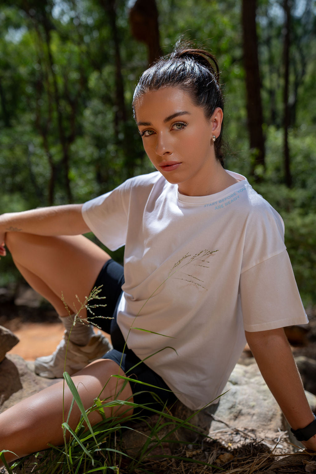 Featuring our brand logo and the empowering slogan "Start before you’re ready," this Tee is a reminder that the best way to achieve your dreams is to dive in headfirst, take risks, and trust in your ability to figure things out along the way.