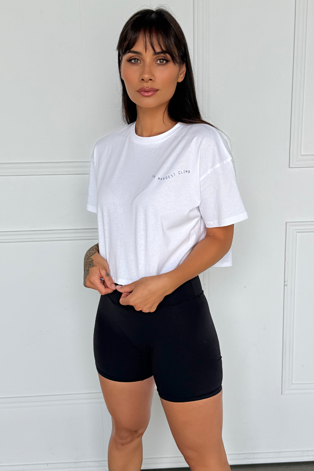 Crafted from premium organic cotton, this tee is designed to move with you—whether you're hitting the gym, chasing big dreams, or just soaking up some downtime. Featuring our The Hardest Climb logo on the back, this piece is all about making waves, both in style and in life.