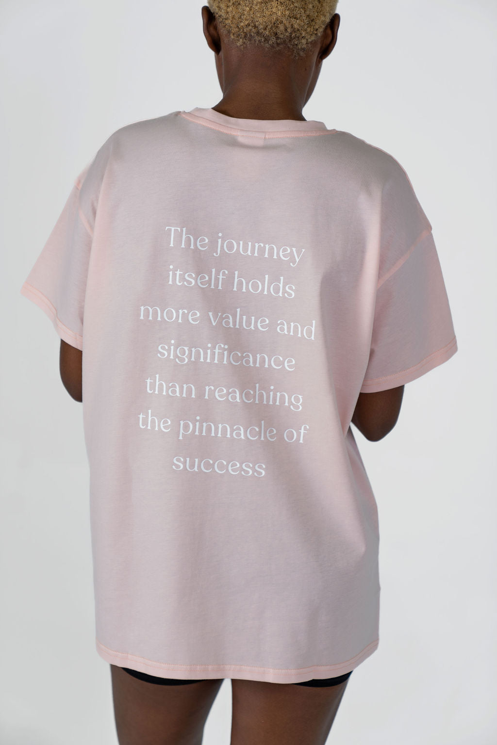 Featuring our iconic brand logo and the inspiring slogan "The journey itself holds more value and significance than reaching the pinnacle of success," this Tee is a reminder to savour every moment, embrace every challenge, and find joy in the process of growth and discovery.